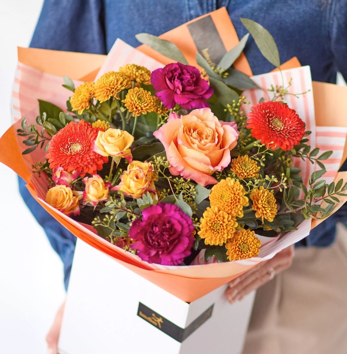 A bouquet handcrafted to capture the amazing colour autumn can bring. Expect to see blooms in shades of ruby, amber, mustard and plum. Radiant!